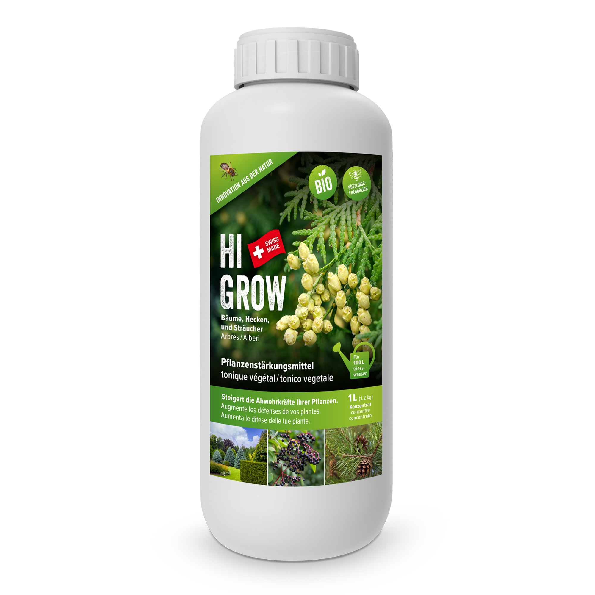 Die natürliche Kombination aus pflanzlichen Wirkstoffen und einer ausgewogenen Nährstoffbasis unterstützt die Symbiose zwischen Bodenorganismen und Wurzeln und schafft damit ein stabiles, gesundes Umfeld für langfristiges Wachstum. Selbst unter erschwerten Bedingungen – etwa durch Insektenstress oder ungünstige Witterung – bleiben Bäume, Sträucher und Hecken widerstandsfähig, vital und formschön.